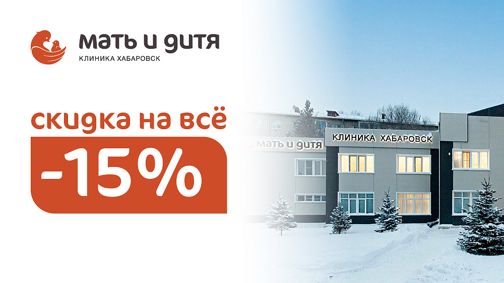 Клиники «Мать и дитя» Хабаровск: 1 год. Мы рады отметить первый юбилей нашей любимой клиники и поделиться радостью с вами! В честь нашего первого дня рождения мы предлагаем скидку 15% на все услуги клиники.